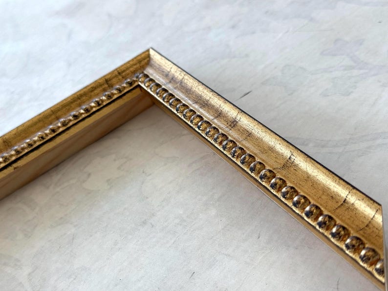 Distressed Gold Picture Frame w/Bead- Vintage- Custom Sizes A4 A3 A2 4x4 4x6 5x7 8x8 8x10 8.5x11 9x12 10x10 12x12 11x14 16x20 18x24